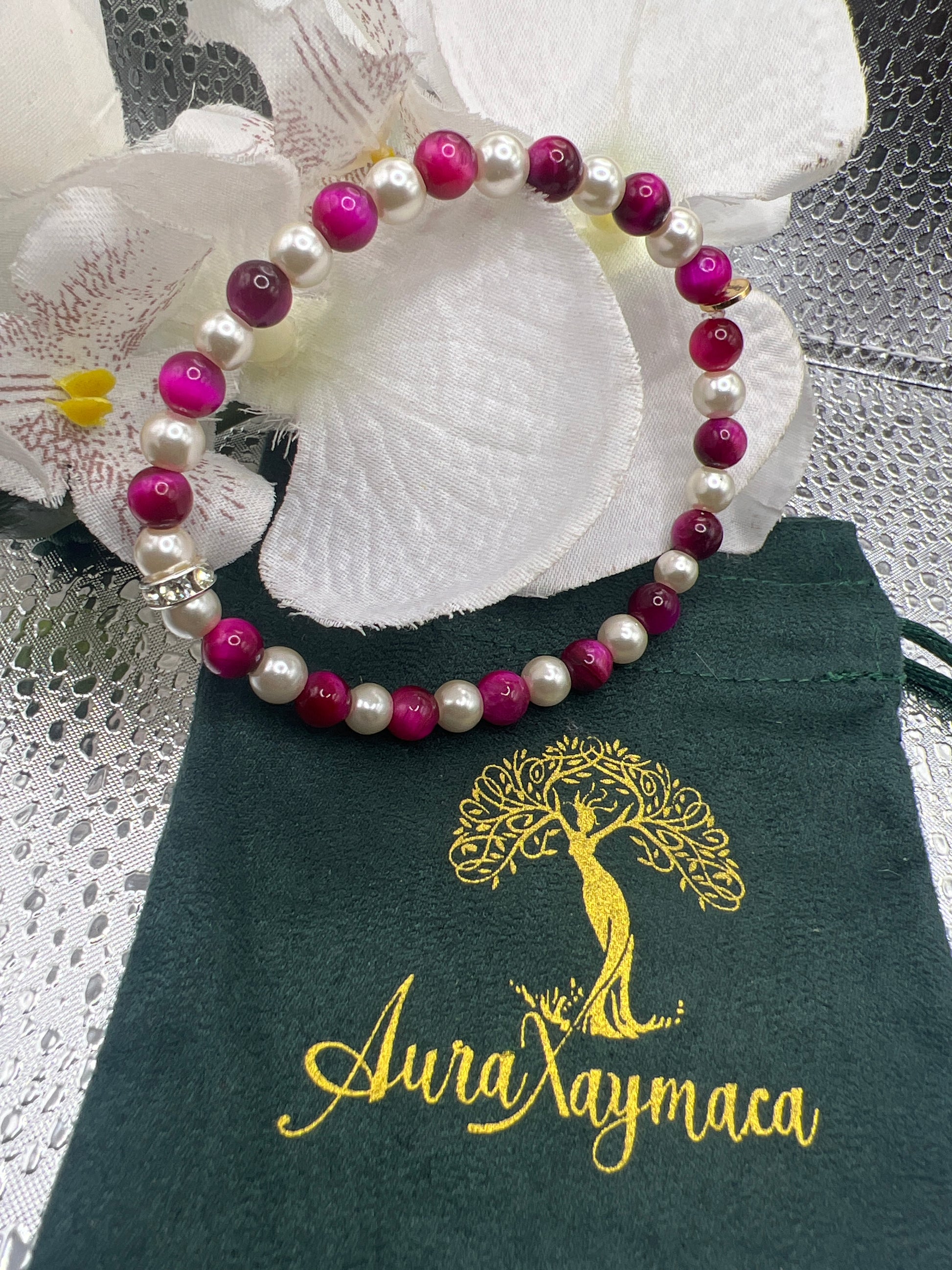 Tigers and Pearl creation . The pink Tigers eye and pearl combo bracelet